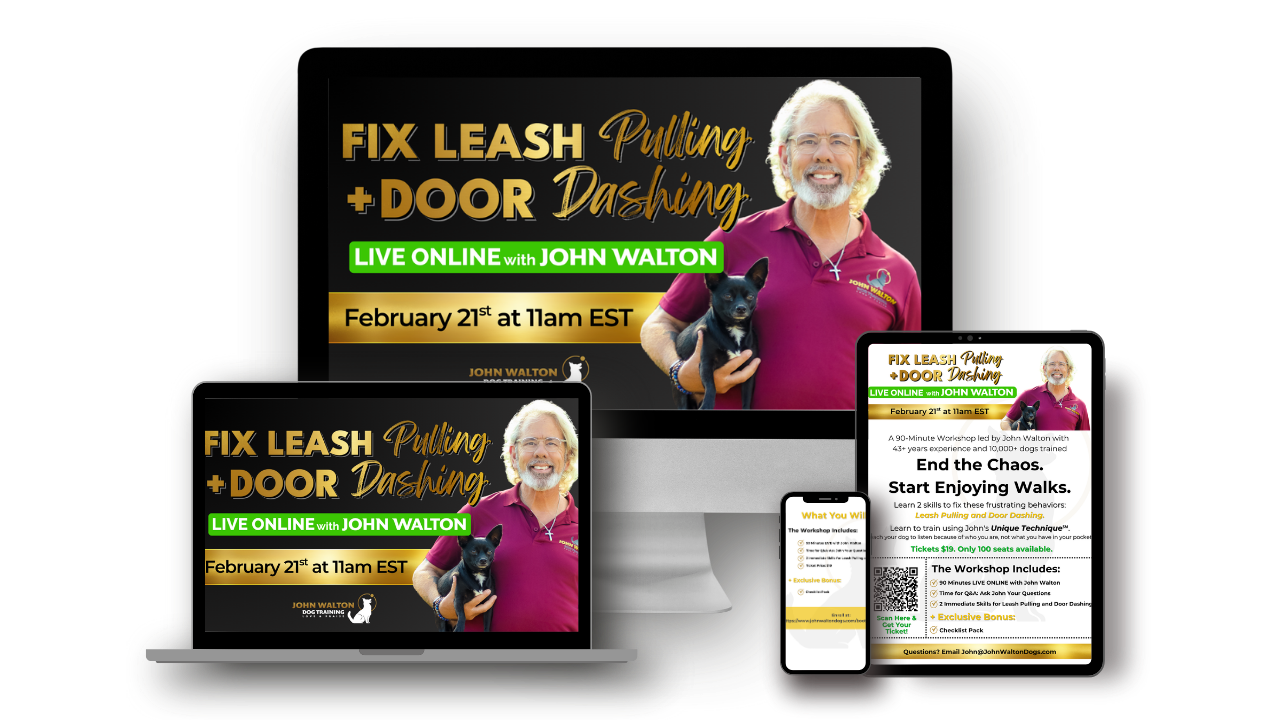 LIVE ONLINE Training with John Walton: Get direct instruction from John, who has 43+ years of experience and has trained more than 10,000 dogs.