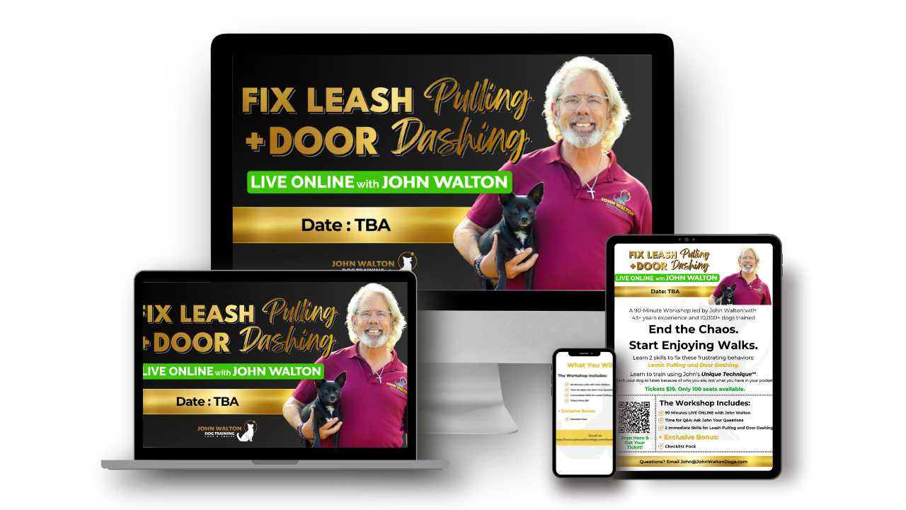 LIVE ONLINE Training with John Walton: Get direct instruction from John, who has 43+ years of experience and has trained more than 10,000 dogs.